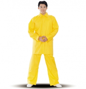 2. 雨衣背部有三角尼網,前襟內車拉鍊,外為黃色塑鋼壓釦