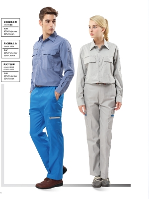 日式長袖工作服/日式工作褲(火山灰)(寶石藍)